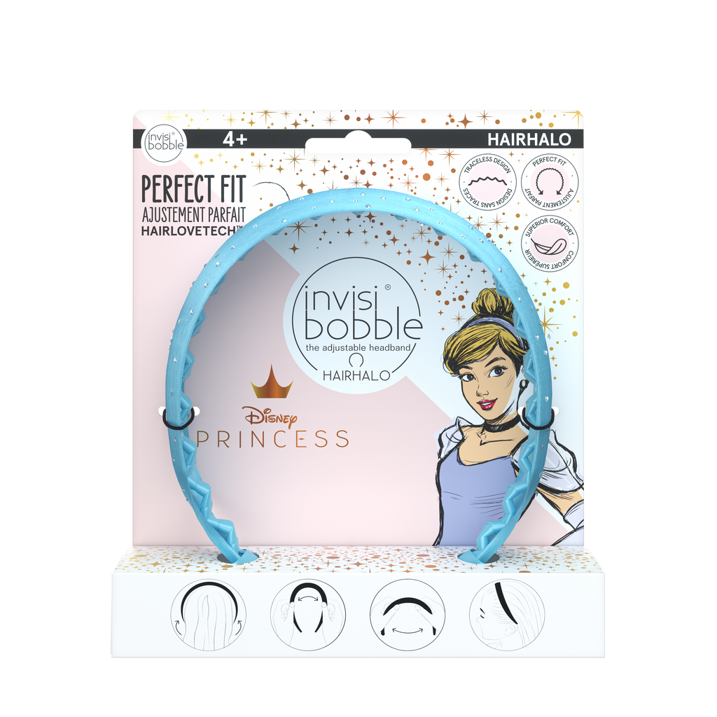· The Adjustable Headband: Crown yourself queen for a day with our fully adjustable headband. The patent-pending technology of the invisibobble Disney Princess Cinderella HAIRHALO is as hair loving as it gets. Try the headband on, adjust it where it is too tight or too loose by bending it, and then wear it comfortably all day long. Even more, it leaves just a few marks on your hair. One size fits all. Ages 4+.