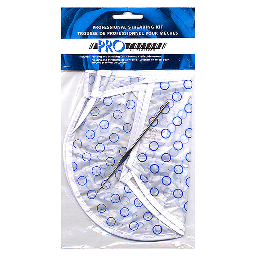 Profactor Professional Two Piece Streaking Kit used by Salon Professionals. The 2-piece kit includes: Frosting and Streaking Cap, Frosting and Streaking Metal Needle.